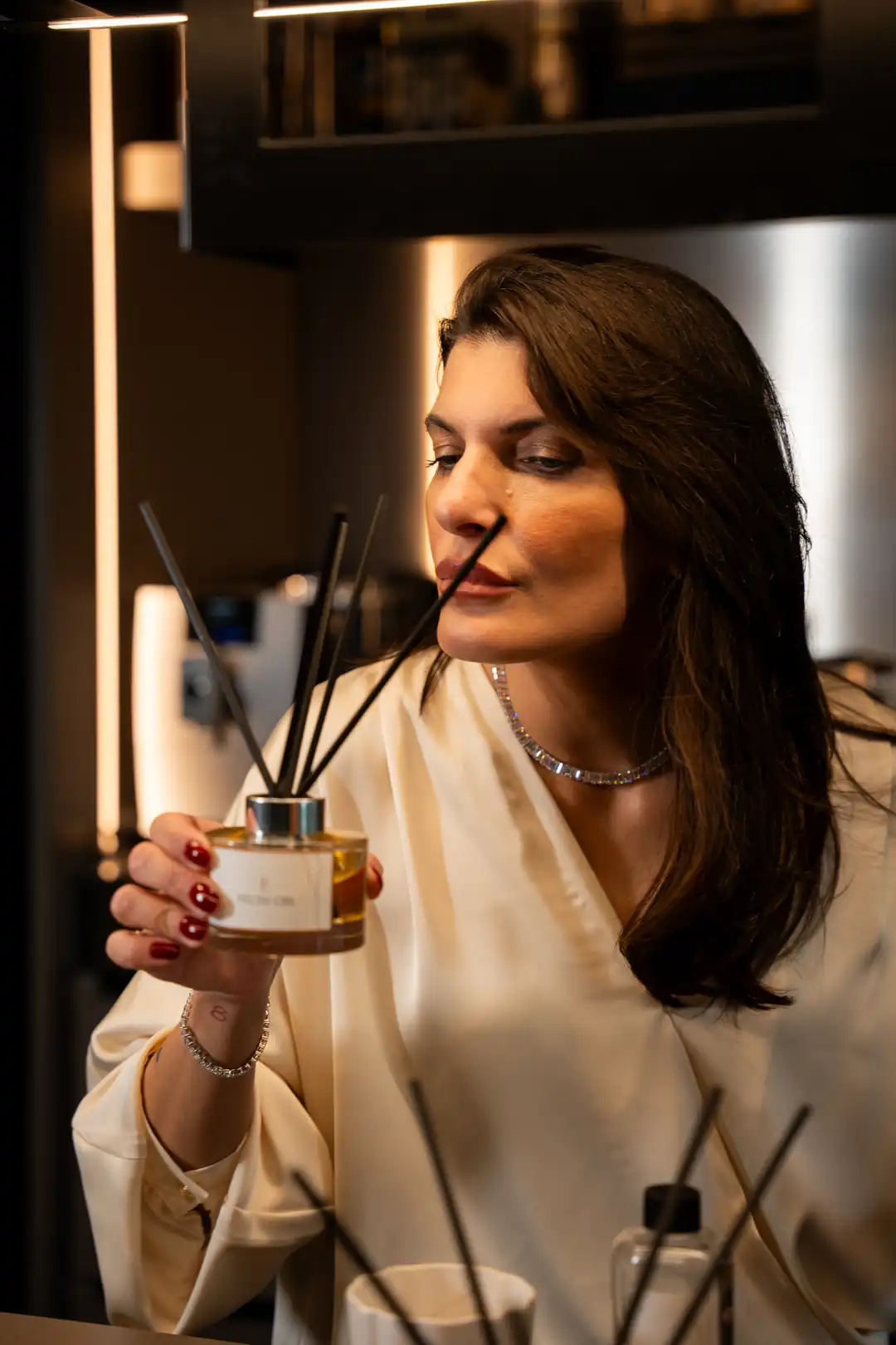Evin vitrini olan salonda daha kompleks ve oryantal kokular kullanılabilir. Amber veya hafif odunsu kokular, salonun daha sıcak ve davetkâr görünmesini sağlar. Burada çubuklu oda kokusu kullanımı, sürekli bir imza koku oluşturmak için çok uygundur.